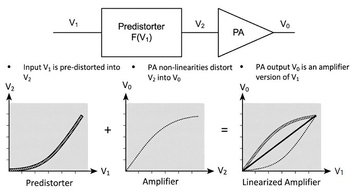 Lý tưởng nhất, tất cả các bộ khuếch đại nên có tính tuyến tính hoàn hảo, nghĩa là tín hiệu đầu ra phải là bản sao chính xác của tín hiệu đầu vào. Tuy nhiên, không thể tạo ra một bộ khuếch đại tuyến tính hoàn hảo vì các thiết bị khuếch đại, chẳng hạn như bóng bán dẫn hoặc ống chân không, vốn dĩ là phi tuyến tính, điều này tạo ra một lượng phi tuyến tính nhất định trong tín hiệu đầu ra/được khuếch đại. Tính phi tuyến tính tạo ra sự tái tạo phổ, dẫn đến nhiễu và cũng có thể dẫn đến vi phạm các tiêu chuẩn phát xạ do các cơ quan quản lý đặt ra. Nó cũng có thể dẫn đến sự suy giảm tỷ lệ lỗi bit (BER) và thông lượng dữ liệu của hệ thống truyền thông.