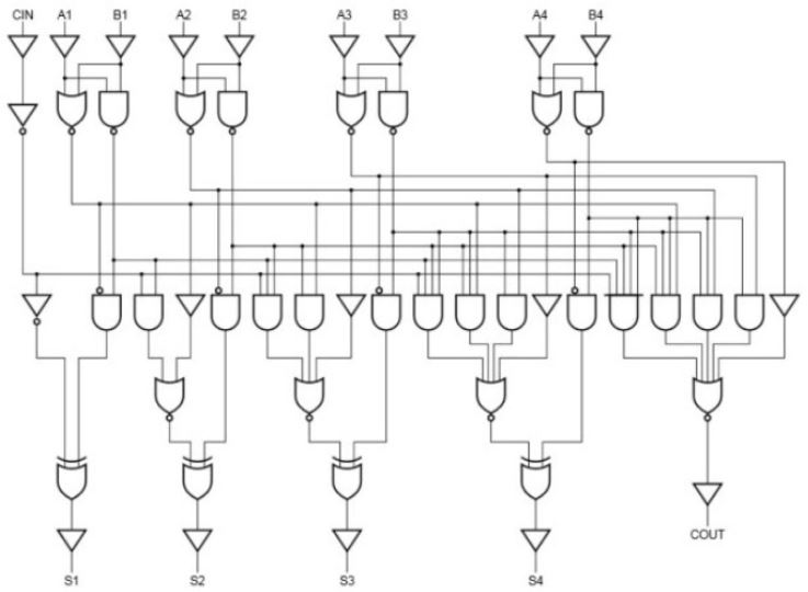 Mạch cộng nhìn trước Carry Look-head Adder cho 4 bit được đưa ra bên dưới.