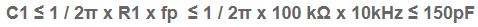 Để đảm bảo rằng mạch hoạt động ổn định trong toàn bộ dải tần. Giá trị tụ điện cho dải tần số yêu cầu có thể được tính như sau: