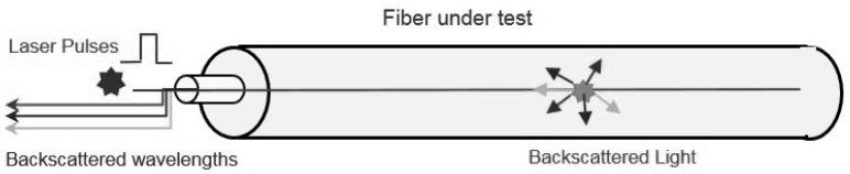 Khi các photon ánh sáng bị tán xạ bởi vật liệu sợi một cách ngẫu nhiên. Nó được gọi là tán xạ Rayleigh. Nguyên tắc này đã được chứng minh là hữu ích với nhiều loại kỹ thuật kiểm tra sợi quang, chẳng hạn như kiểm tra sợi quang OTDR, do cường độ, bước sóng và vị trí của ánh sáng tán xạ trở lại máy dò. Kích thước và vị trí của các sự kiện suy giảm và phản xạ trong sợi quang có thể được xác định.
