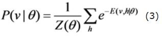 trong đó V i là điều kiện của đơn vị hiển thị i đầu tiên, h j là điều kiện của đơn vị ẩn j đầu tiên, 0={W ij , a i , bj} là tham số RBM, W ij là trọng số kết nối giữa đơn vị hiển thị i và đơn vị ẩn i, j là độ lệch của đơn vị hiển thị và là độ lệch của đơn vị ẩn. Từ hàm năng lượng, có thể thu được phân phối xác suất kết hợp (v, h) của phương trình (2):