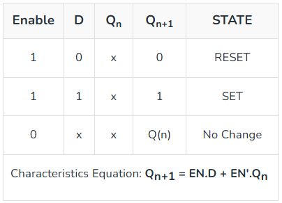 Bảng dưới đây biểu diễn bảng chân lý của chốt D.