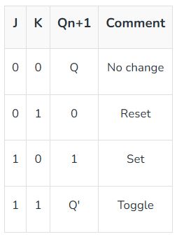 Bảng dưới đây biểu diễn bảng chân lý của chốt JK.
