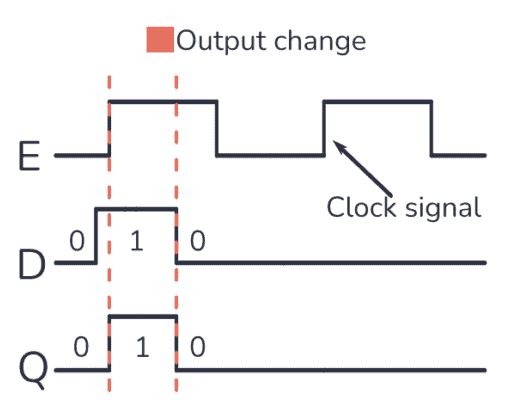 Trong sơ đồ thời gian ở trên, bạn có thể thấy rằng trong một chu kỳ xung nhịp, đầu ra vừa là 1 vừa là 0 vì đầu vào D thay đổi trong suốt xung nhịp. Đó là điều bạn không muốn xảy ra trong hệ thống kỹ thuật số có xung nhịp.