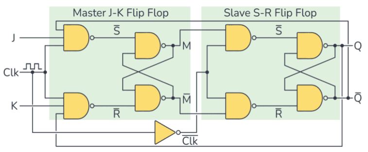 Bên dưới là một flip-flop JK được kích hoạt bằng xung dựa trên nguyên tắc Chủ-Tớ: