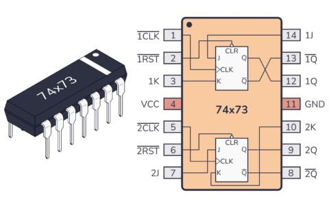 Bạn cần một JK Flip-Flop? Bạn không cần phải tự lắp ráp nó từ đầu. Có rất nhiều mạch tích hợp với mạch JK Flip-Flop bên trong. Hai lựa chọn phổ biến là chip CD4027 hoặc IC 74HC73 .
