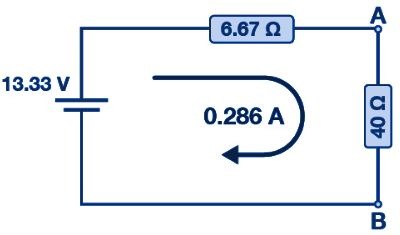 V AB = 20 – (20 Ω x 0,33 A) = 13,33 V