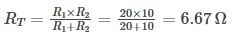 Một điện trở 10 Ω mắc song song với một điện trở 20 Ω, do đó điện trở tương đương của mạch là:
