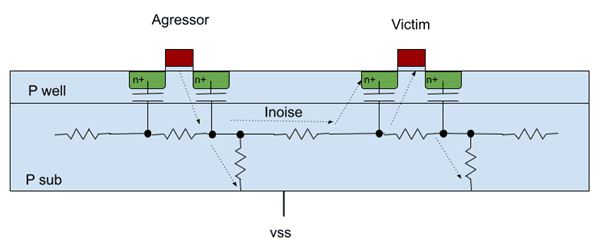 Mạch tích hợp silicon sử dụng nhiều hình thức cách ly khác nhau để cách ly điện các thiết bị, chẳng hạn như tiếp giáp PN phân cực ngược hoặc cách ly rãnh. Ngoại trừ các vật liệu đặc biệt như silicon trên sapphire, tất cả đều sử dụng đế silicon, vốn là một đường dẫn tiềm ẩn cho hiện tượng ghép nhiễu. Sự ghép nhiễu này có thể làm giảm hiệu suất hoặc thậm chí gây ra lỗi chức năng. Vì vậy, các nhà thiết kế cần sử dụng nhiều kỹ thuật khác nhau để giảm thiểu ghép nhiễu.