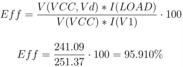 Hiệu suất của mạch vừa được thử nghiệm được thể hiện trong công thức ở Hình 3 và bằng 95,910%.