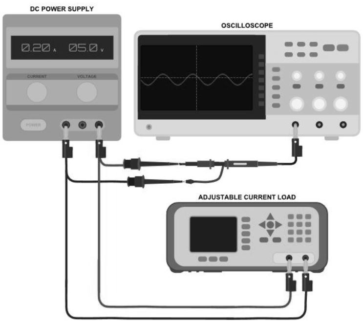Cụ thể, gợn sóng đầu ra và nhiễu có thể được tách thành các yếu tố riêng biệt. Nhiễu là một loạt các tín hiệu nhiễu tần số cao hoặc thấp ngẫu nhiên hướng vào nguồn điện. Cách tốt nhất để giảm thiểu nhiễu là che chắn dây dẫn và vận hành thiết bị càng xa các nguồn gây nhiễu điện càng tốt. Gợn sóng đầu ra có tính chu kỳ trong trường hợp nhiễu ngẫu nhiên. Gợn sóng đầu ra là sự dịch chuyển định kỳ của điện áp đầu ra, có thể quan sát được. Gợn sóng này thường do tính chất chu kỳ của dòng điện xoay chiều gây ra. Quan sát nguồn điện bằng máy hiện sóng là điều cần thiết để xem cả gợn sóng đầu ra và nhiễu. Gợn sóng hoặc nhiễu quá mức nằm ngoài phạm vi cho phép, thường thấy trong môi trường được kiểm soát, sẽ làm giảm hiệu suất của cảm biến. Khi kiểm tra nhiễu và gợn sóng đầu ra, băng thông phải đủ để ghi lại toàn bộ chu kỳ của bất kỳ gợn sóng đầu ra nào. Nhiễu bổ sung có thể được phát hiện trên chính đầu dò của máy hiện sóng. Sử dụng kết nối đầu dò với đất ngắn nhất có thể sẽ giảm thiểu lượng nhiễu mà đầu dò nhận được. Cẩn thận để giảm thiểu bất kỳ lỗi và nhiễu nào có thể được thêm vào hệ thống.