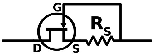 Mạch này kết nối một điện trở giới hạn dòng nối tiếp với tải. Chúng tôi chọn giá trị điện trở để giới hạn dòng điện ở mức an toàn bằng cách hạn chế sụt áp trên điện trở. Định luật Ohm phát biểu rằng điện áp rơi giữa điện trở tỷ lệ thuận với dòng điện.