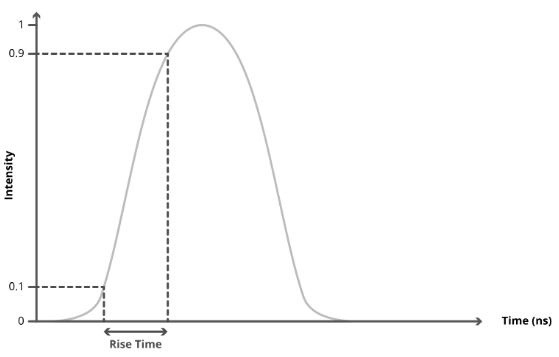 Thời gian tăng lên của một máy dò photon thể hiện sự gia tăng tốc độ của xung đến từ 10% lên 90% cường độ. Điều này định lượng tốc độ phản ứng của máy dò sau khi một photon tấn công, đây là một lượng quan trọng để đo thời gian chính xác. Các nguồn sáng xung LED tốt nhất có độ rộng xung là 100 picogiây, vì vậy các máy dò tương thích sẽ có nhiều thời gian hơn ở mức này để đo tín hiệu từ các nguồn sáng này mà không cần mở rộng thêm phạm vi tối đa.
