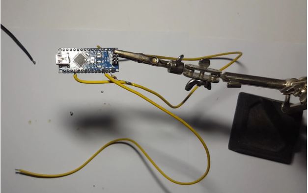 - Kết nối một đoạn cáp dài vào chân 5 volt của Arduino
